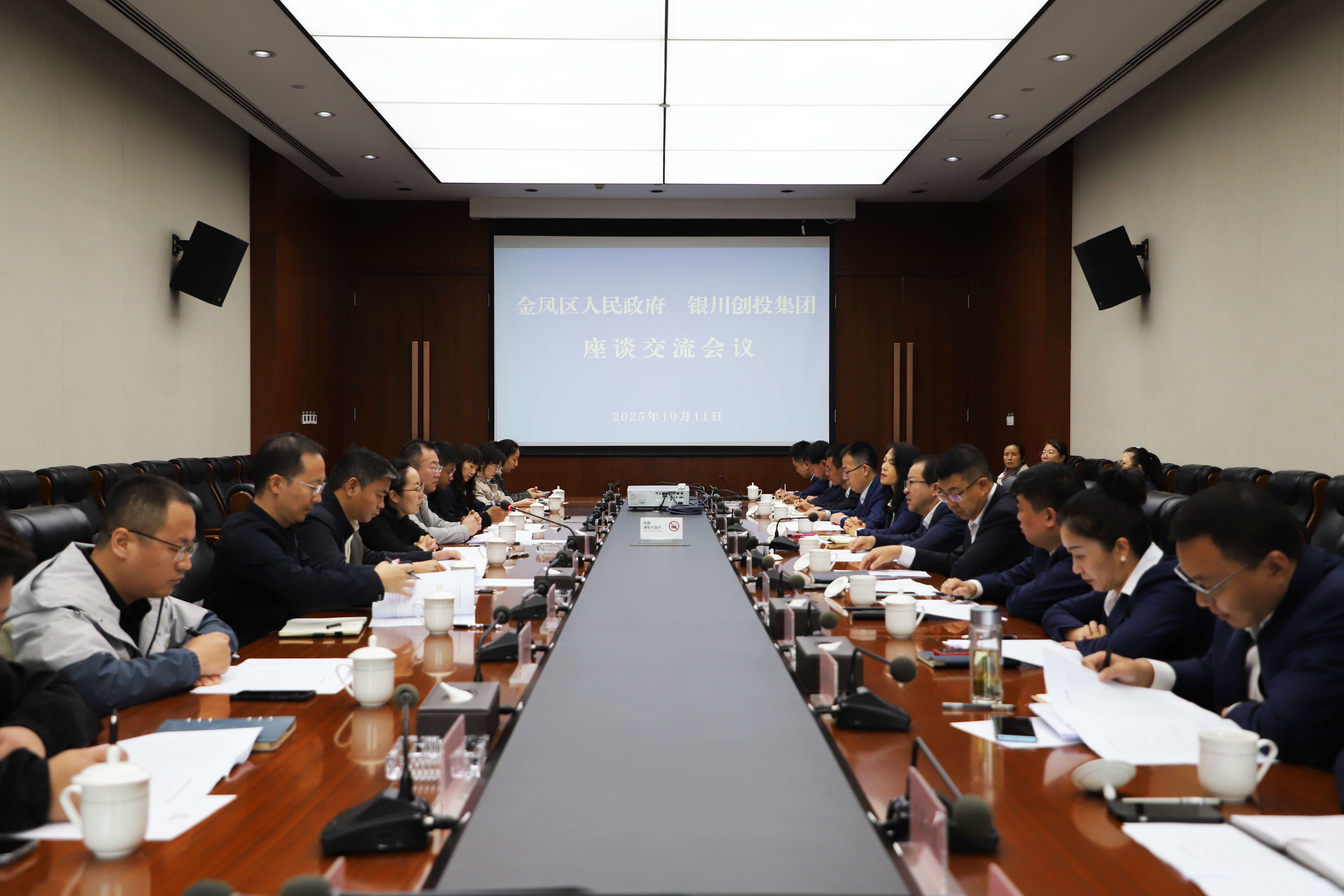 10月11日上午,銀川市金鳳區(qū)委副書記、政府代區(qū)長王芳帶領金鳳區(qū)政府班子成員,相關局、街道主要負責同志一行,赴銀川創(chuàng)投集團考察并召開座談會。雙方圍繞算力產(chǎn)業(yè)發(fā)展、科技創(chuàng)新轉(zhuǎn)換、閑置資產(chǎn)盤活、人才服務等重點領域進行深入洽談,凝聚合作共識。座談會由集團黨委書記、董事長何曉銳主持。
